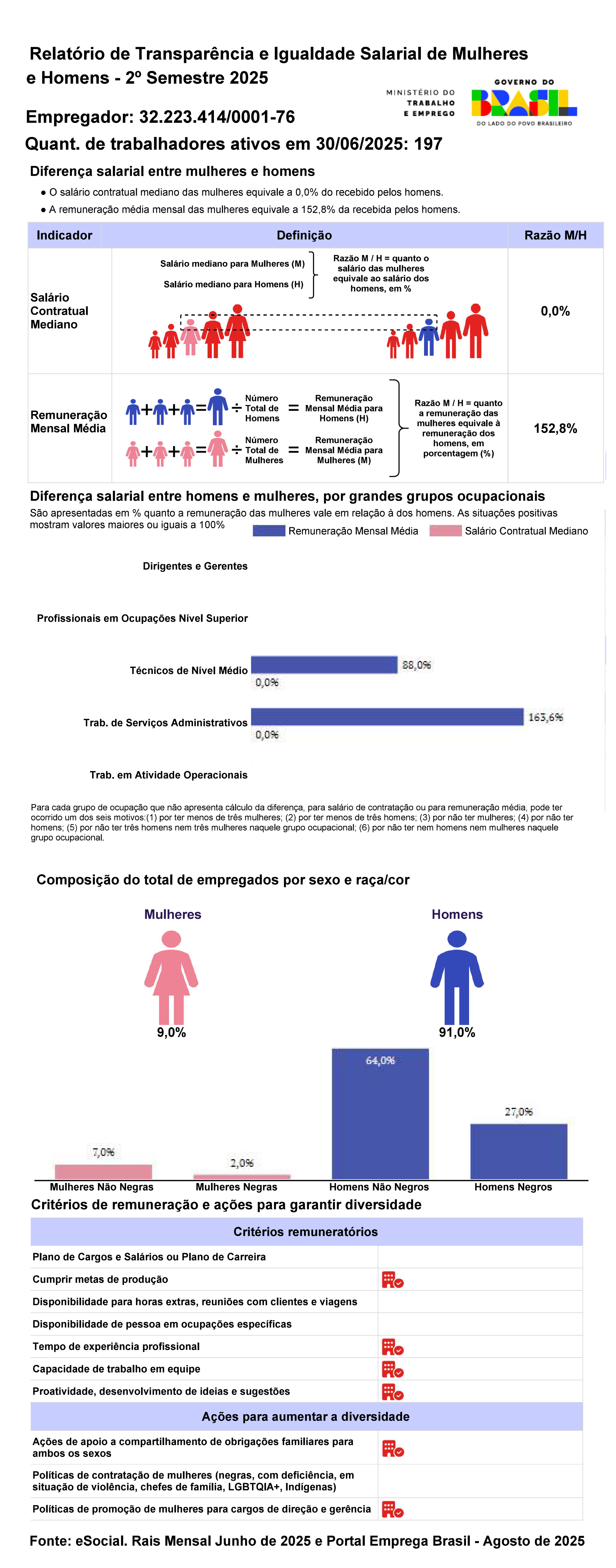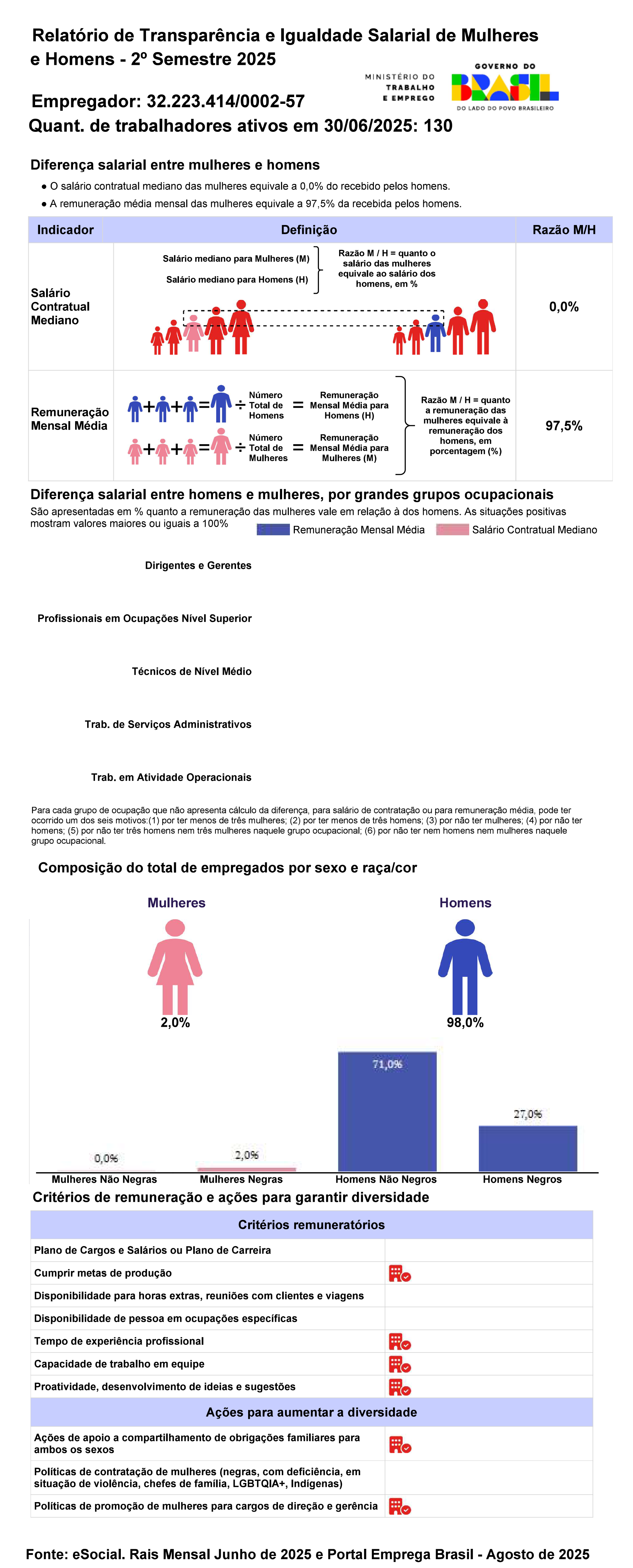 “A Lei nº 14.611, sancionada em julho de 2023, reforça a necessidade da igualdade salarial e de critérios remuneratórios entre homens e mulheres e tem, como uma de suas principais inovações, a obrigação das empresas de direito privado com 100 ou mais empregados de apresentar, duas vezes ao ano, o Relatório de Transparência Salarial e de Critérios Remuneratórios.”